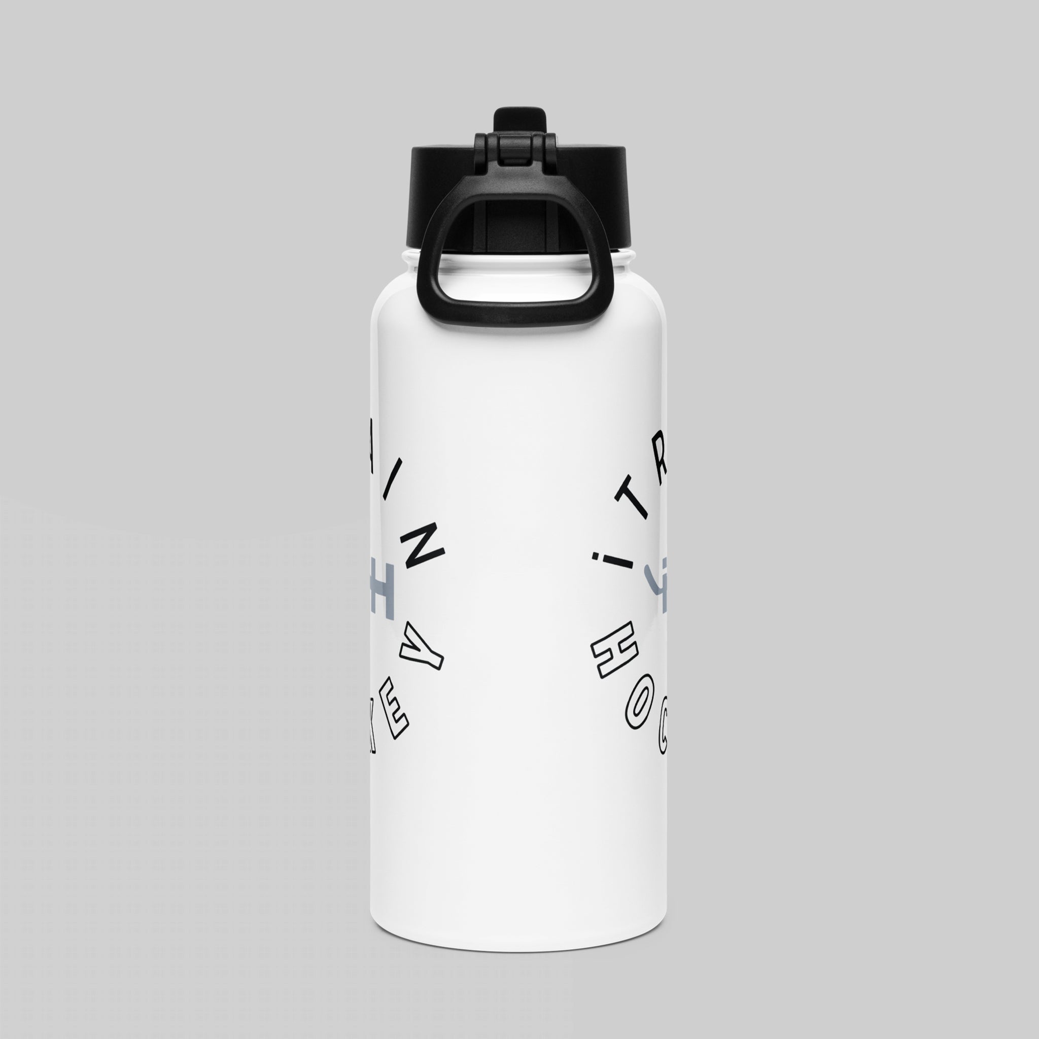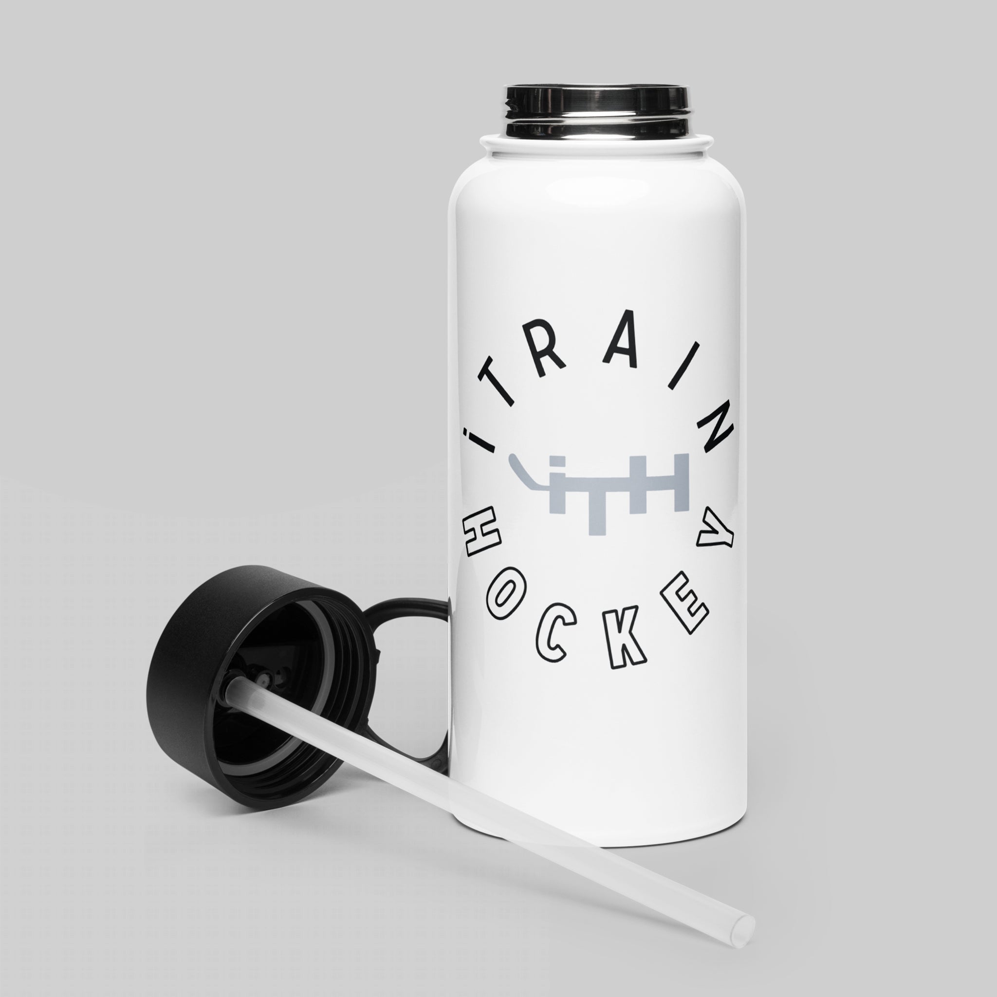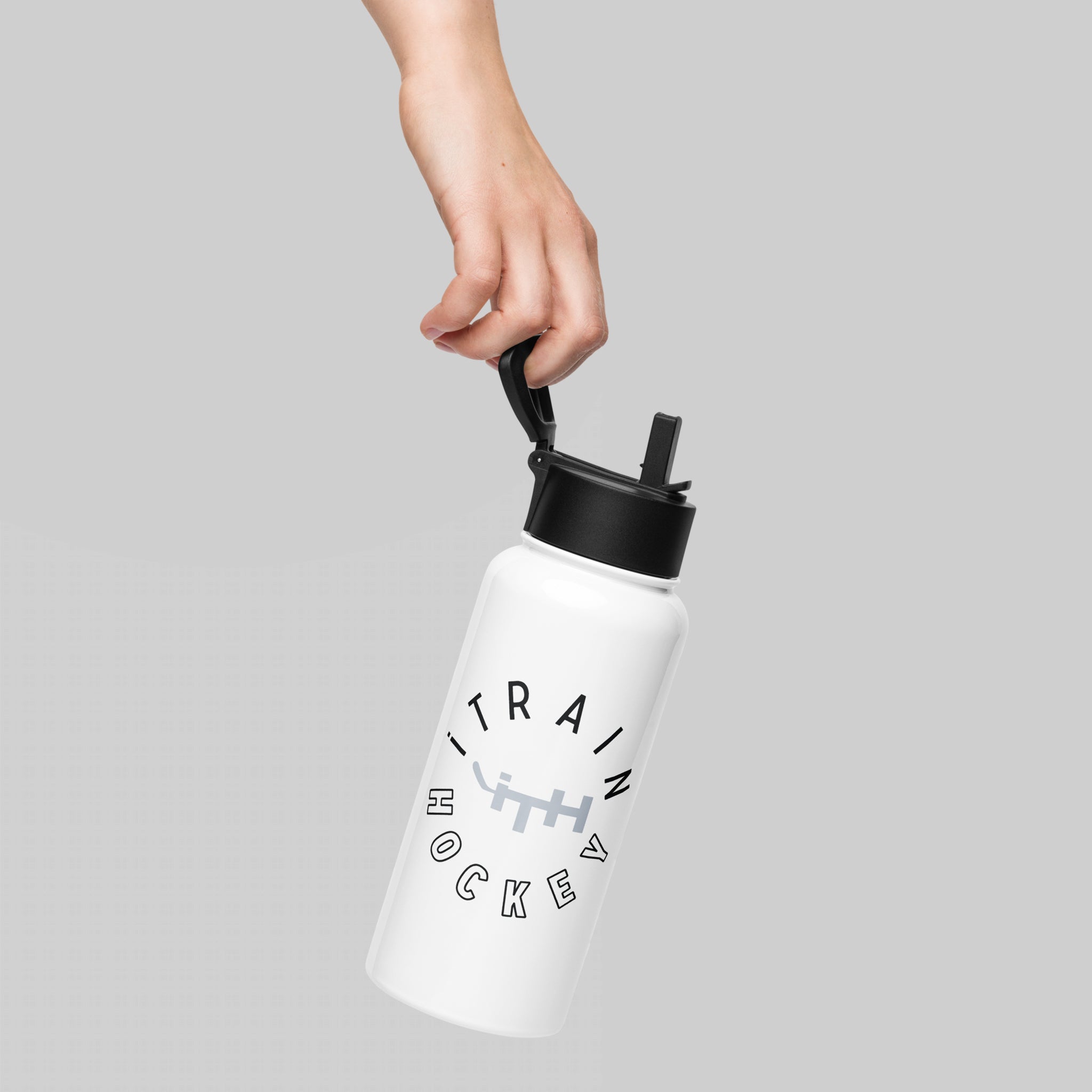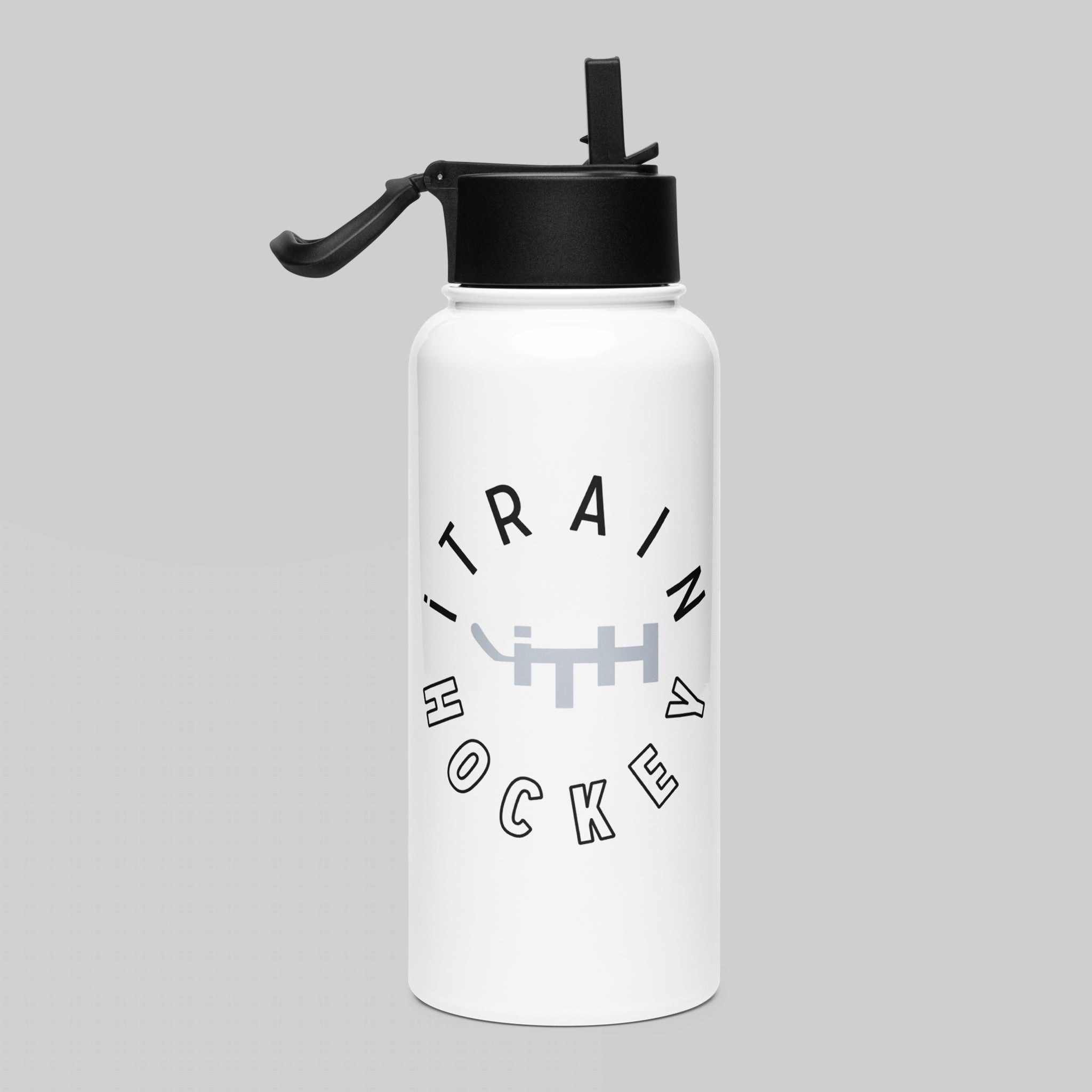 Stay hydrated all day with this 32 oz (950 ml) water bottle. Ideal for workouts and throwing into your hockey bag for post-practice / post-game hydration. Features a spill-free wide-mouth straw that folds away when not in use, plus a swivel handle that makes carrying this liquid lifesaver a total breeze!